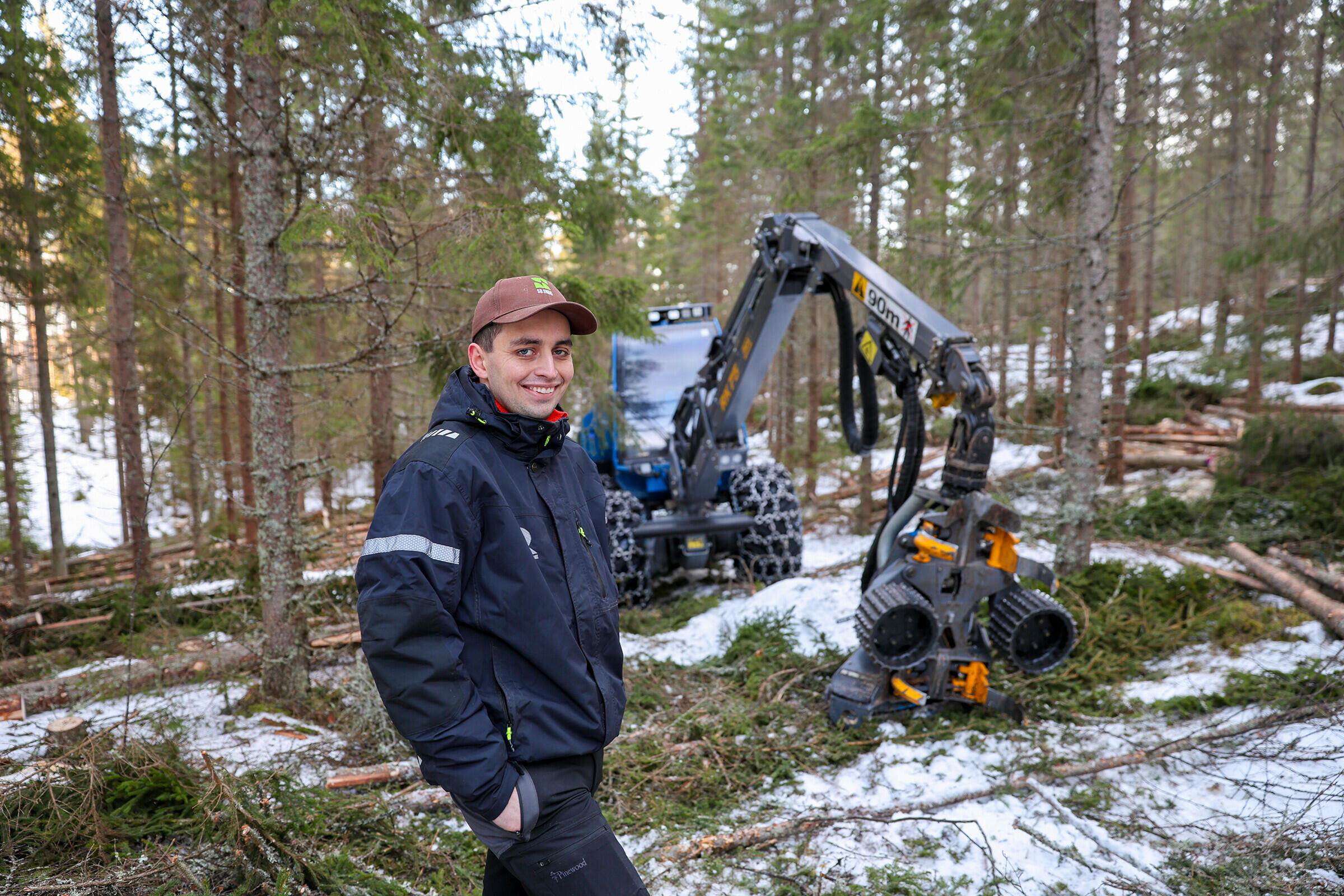 Tor Håkon Melby fra Eidskog kjøpte en tynningsmaskin og en lassbærer i fjor høst. Til sammen kostet de nesten 8 millioner kroner. – Dette er en investering for fremtiden, sier 21-åringen.